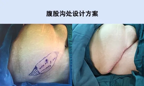 看到这,有人会有这样的疑问:右足切了补左足,左足是得到了很好的修复,那右足怎么办?这不是拆东墙补西墙,十个瓦缸九个盖永远盖不上了吗?稍安勿躁,一个好的手术方案是经得起仔细推敲的,听我继续讲解。现在面临的问题就是右足该如何修复?是直接取皮植皮,还是再次切取其他皮瓣对其进行修复?假如用植皮,本文前面已经做了解释,缺点很多,所以我们不采取!如果再次选择皮瓣修复,显然术中要做两个皮瓣的移植,其手术难度、风险又将会成倍增长。我们本着以患者为中心的理念,最后还是决定取腹股沟皮瓣来修复右足供区。那为什么要选择腹股沟皮瓣呢?考虑到患者是女性,对外观要求非常高,而腹股沟皮瓣供区隐蔽,缝合后穿上短裤便可掩盖,不留痕迹。看到了这里我想大家心里肯定又会有这样的疑问:那为什么不直接切取腹股沟皮瓣来修复左足创面呢?既简单省事还不破坏右足。要是直接用腹股沟皮瓣修复足底负重区创面是不符合足底皮肤特性的!前文已详细解释过,这里不多赘述。其实右足足弓的供区是人体的非负重区,正常脚印通常有个月牙形的凹陷,因此切取此处皮瓣对足的功能不造成任何影响。所以我们这样设计的手术方案一切都是为患者着想,精益求精,不留遗憾!既修复了创面保住肢体,重建了足功能,又对健足供区进行了完美修复!