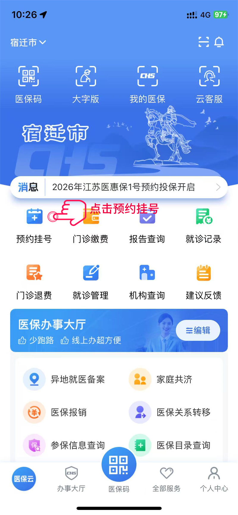 下载江苏医保云app或支付宝进入江苏医保云小程序
